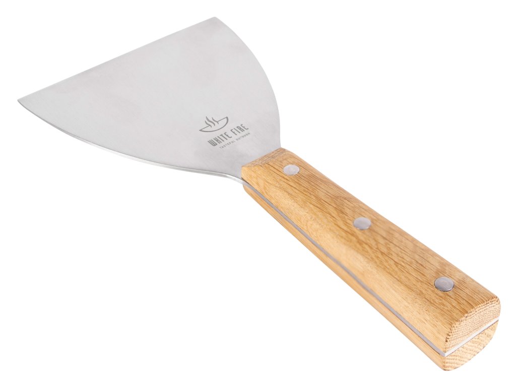 Praktická a elegantní obracečka (turner) od White Fire, vybavená robustní nerezovou špičkou a příjemnou rukojetí z dubového dřeva. Je navržena pro snadné a bezpečné manipulování s pokrmy na planche nebo roštu.