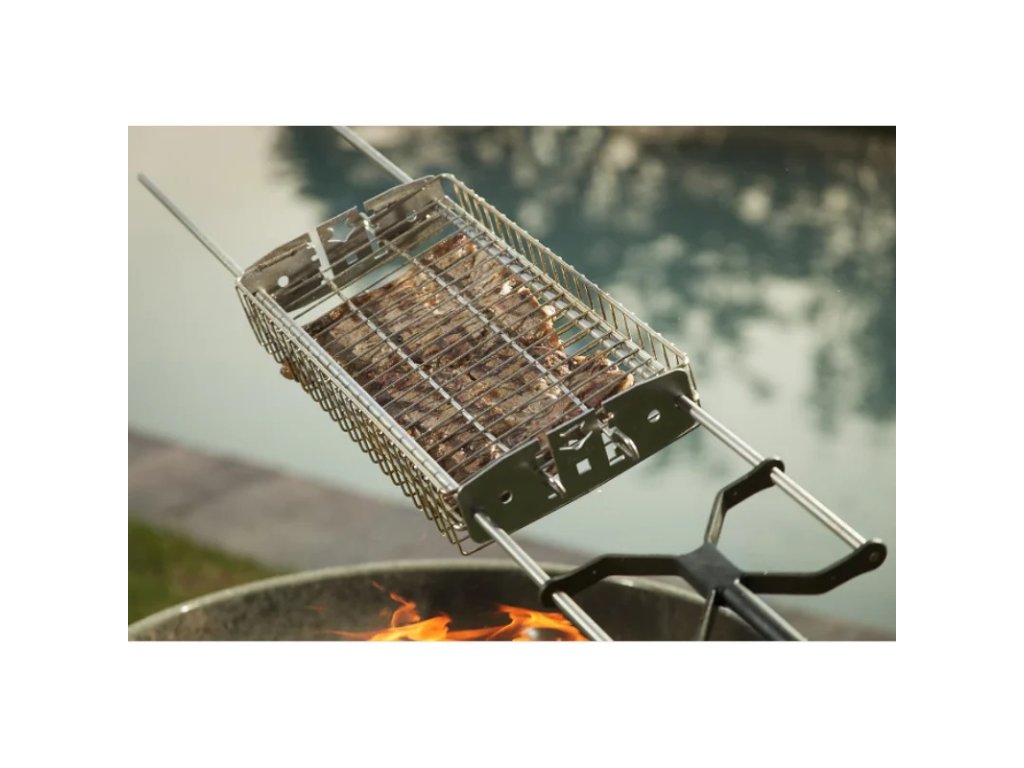 Všestranné příslušenství pro grilování plochých předmětů, jako jsou ryby a mořské plody, a také menších kusů, jako jsou kuřecí křidélka, klobásy, zelenina a kuře, které nelze napíchnout.