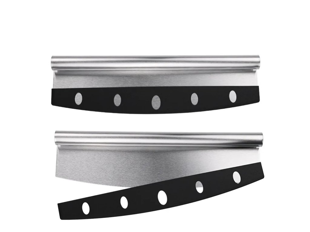 Praktický kolébkový kráječ na pizzu značky UG Grill vyrobený z nerezové oceli. Díky svému tvaru umožňuje snadné a rychlé porcování pizzy jedním plynulým pohybem bez posunutí ingrediencí.
