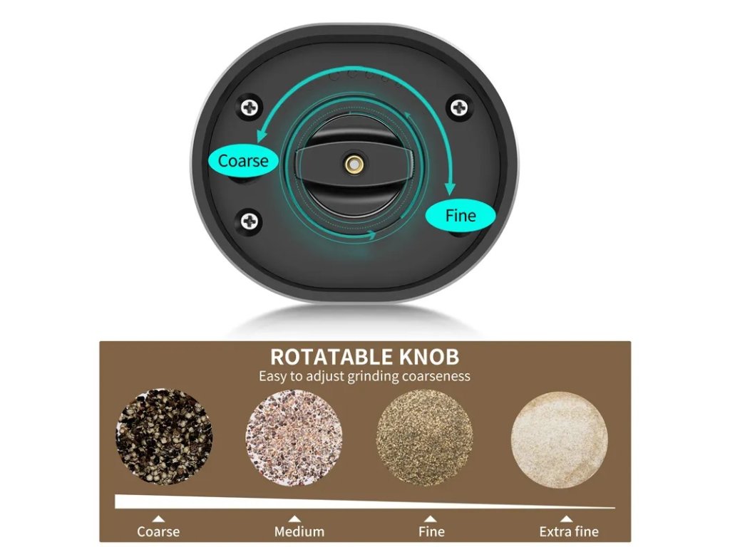 - Nastavitelná hrubost: Libovolné nastavení hrubosti mletí pomocí vestavěného otočného knoflíku u mlecího mechanismu.