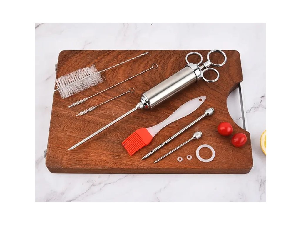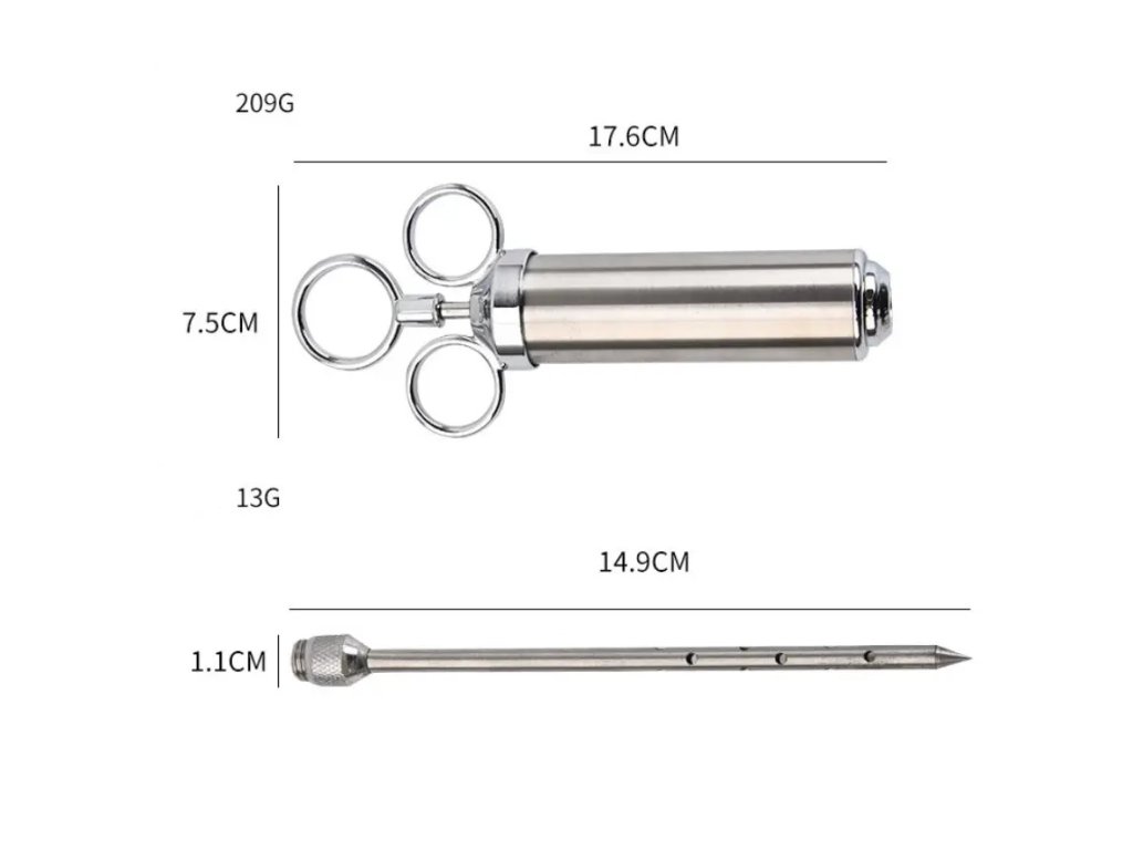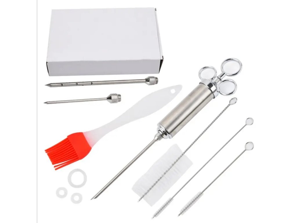 Sada BBQ injektorů na maso od značky UG Grill je skvělým doplňkem vaší grilovací výbavy pro přípravu lahodných a šťavnatých grilovaných pokrmů. Tento set obsahuje injektory, které vám umožní přesně a rovnoměrně naplnit maso nebo drůbež marinádou, kořenící směsí nebo jinými aromatickými tekutinami.
