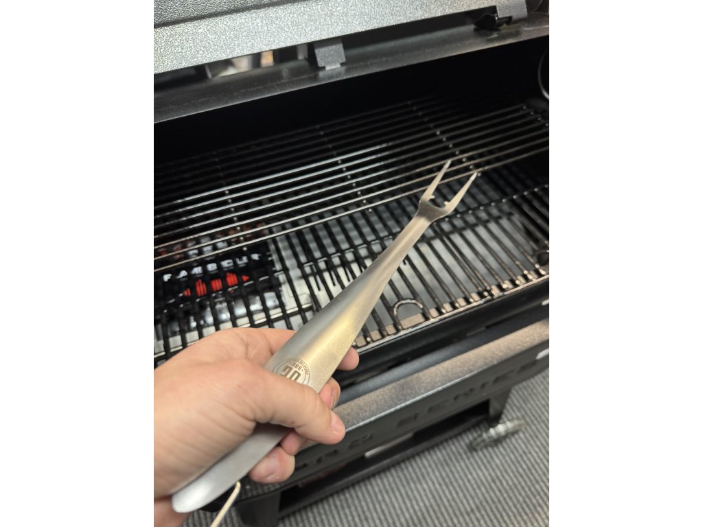 - Grilovací vidlička – Dlouhá a robustní pro precizní manipulaci s pokrmy.
