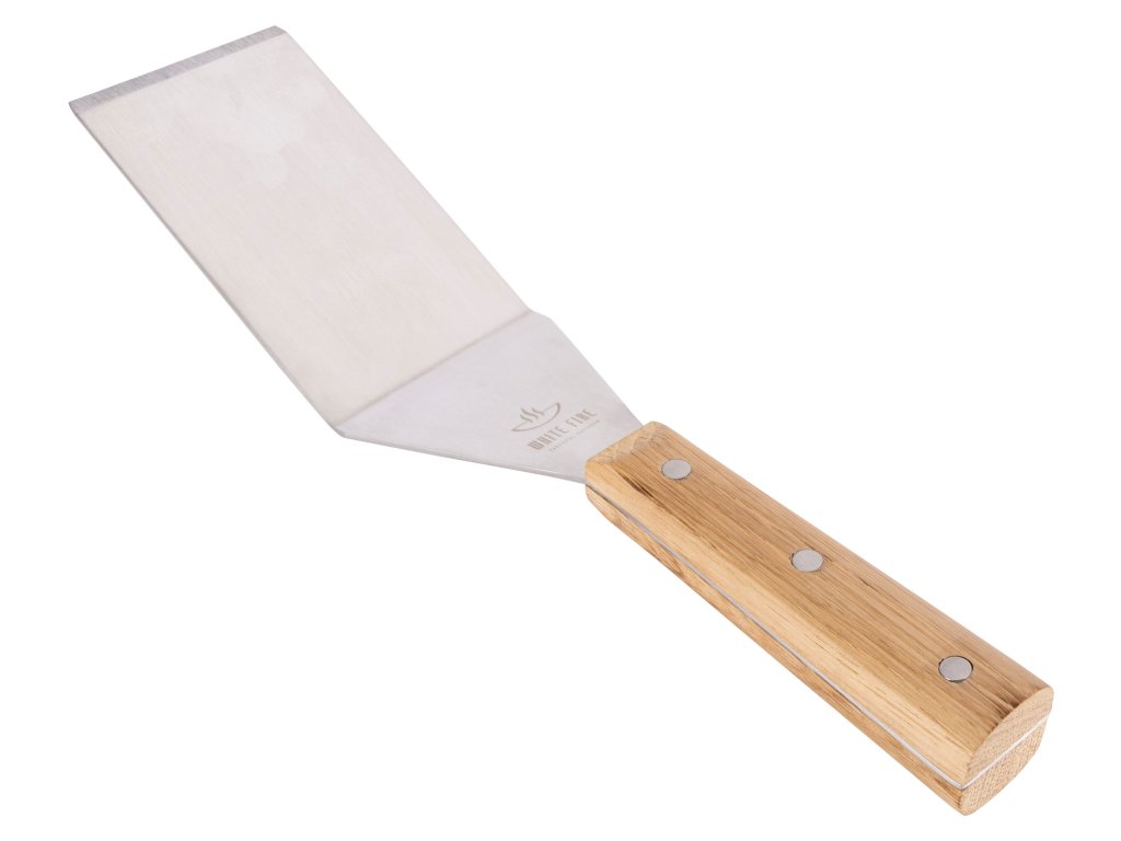 Praktická a elegantní obracečka (turner) od White Fire, vybavená robustní nerezovou špičkou a příjemnou rukojetí z dubového dřeva. Je navržena pro snadné a bezpečné manipulování s pokrmy na planche nebo roštu.