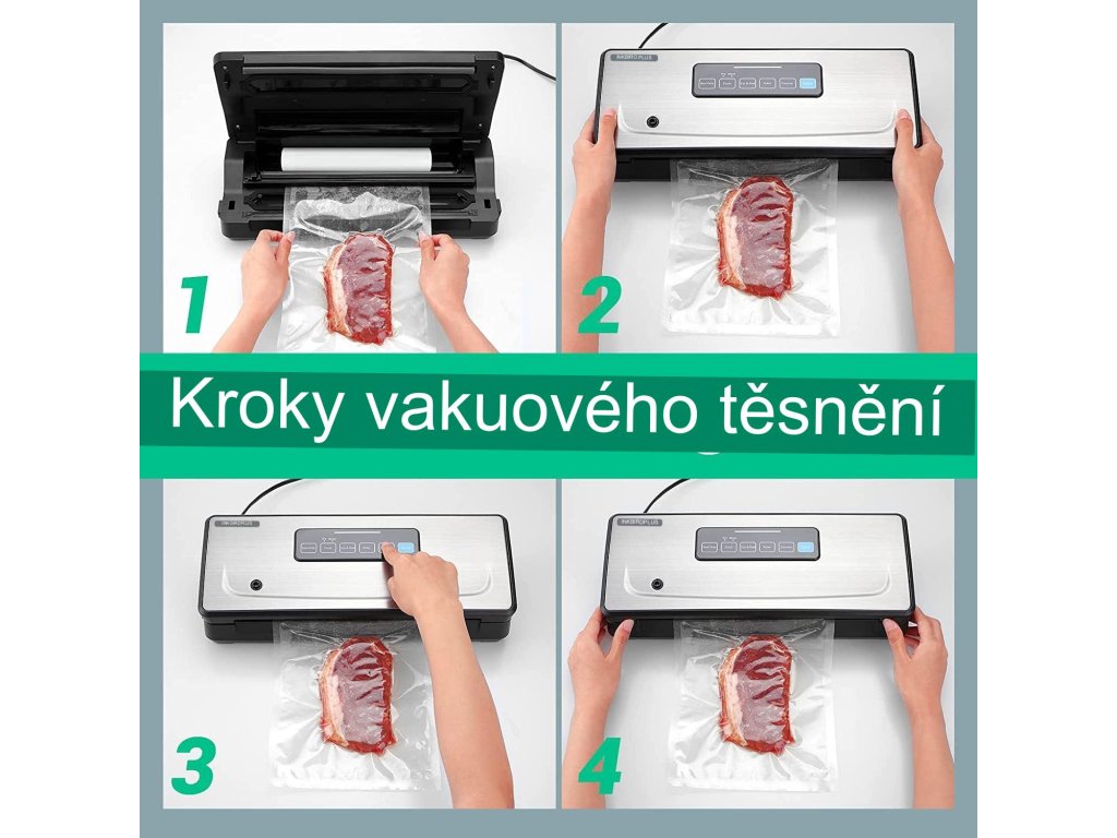 Díky této vynikající technologii prodloužíte čerstvost potravin až osmkrát ve srovnání s tradičními metodami, což zabrání poškození, zápachu, zkáze potravin a jejich plýtvání. Díky vakuovému zavařování můžete uskladnit více potravin v lednici a udržet všechno v pořádku.