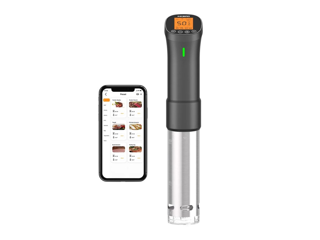 S WiFi Sous vide vařičem INKBIRD ISV-200W se stanete kuchařem na špičkové úrovni díky bezdrátovému ovládání, rovnoměrnému a rychlému ohřevu, teplotnímu alarmu, tichému designu a dalším funkcím. Jeho široké využití umožňuje perfektní dosažení správné úrovně pro kuřecí maso, ryby, hovězí, jehněčí, vepřové maso a mnoho dalšího.
