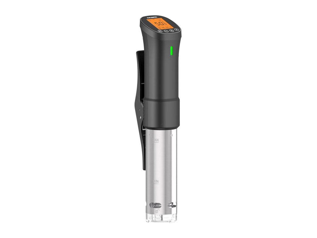 Jednoduché použití: Stačí vložit vařič do nádoby s vodou, umístit potraviny do uzavřeného sáčku a nastavit teplotu a časovač. Vaření jako profesionál nebylo nikdy snazší.