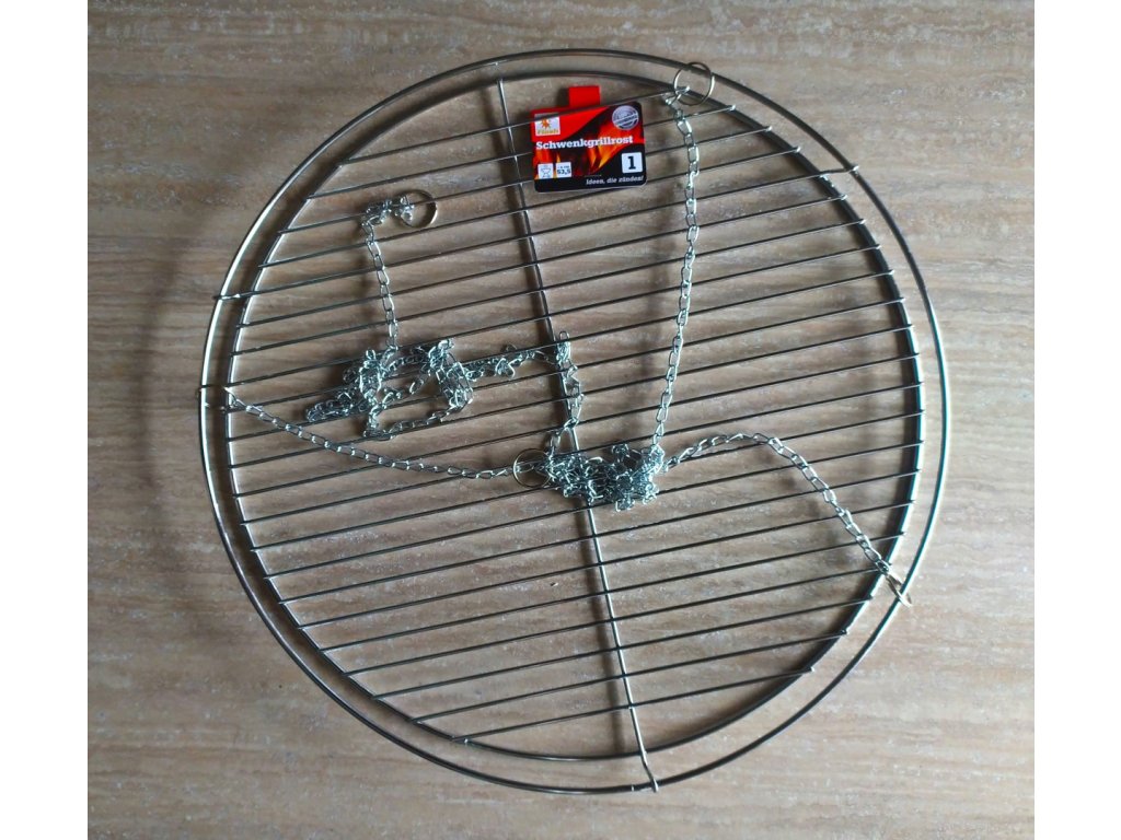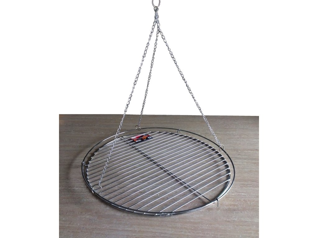 Závěsný kulatý grilovací rošt vyrobený z kvalitní chromované oceli. Tento rošt je navržen pro snadné zavěšení, což jej činí ideálním doplňkem pro venkovní ohniště nebo trojnožky.