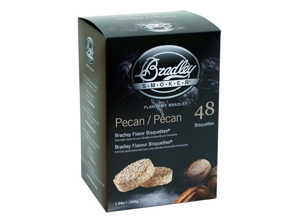 Udící brikety Bradley Pecan-OřechUdící brikety Bradley Pecan-Ořech vám zajistí intenzivní provonění masa. Tajemství chuti v každém malém kolečku. Brikety Pecan-Ořech se pro silnější kouřovou chuť nejlépe hodí k uzení drůbeže, hovězího, vepřového i jehněčího masa.