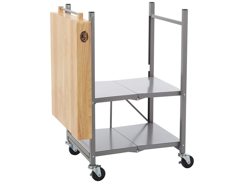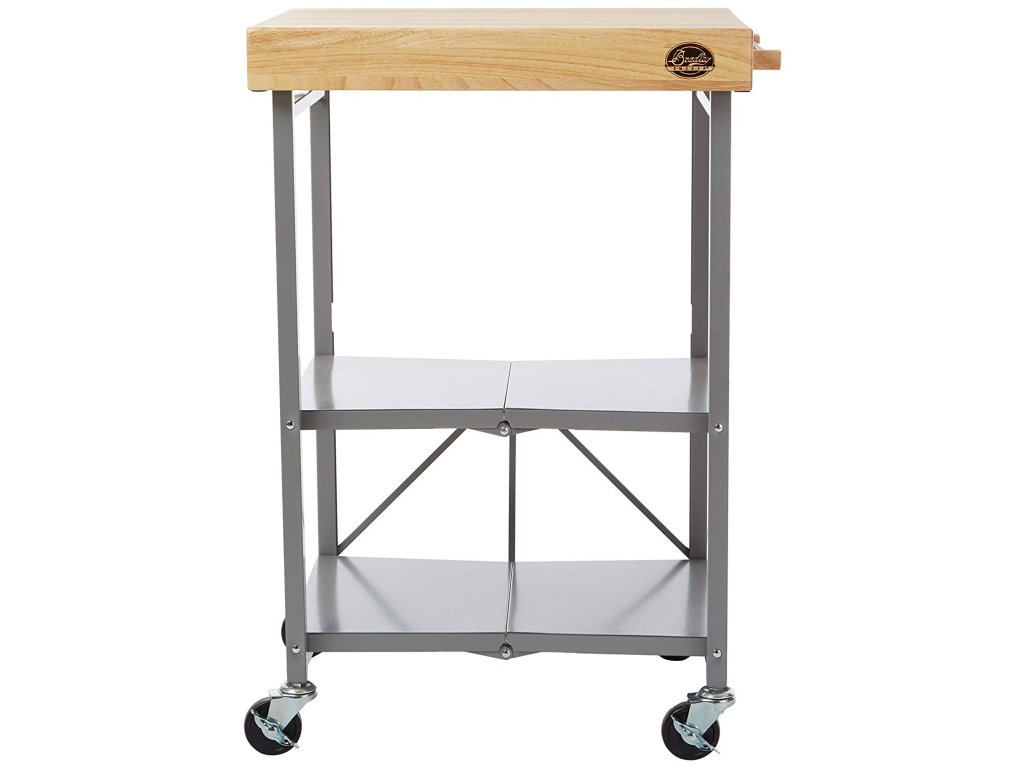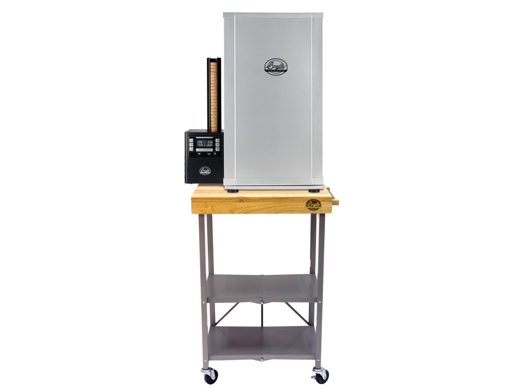 Pojízdný stůl Bradley Smoker je dokonalým pomocníkem pro vaření, přípravu či zábavu. Dřevěná pracovní deska o rozměrech 20" x 24" spolu se dvěma regály nabízí dostatečný úložný prostor pro jídlo nebo nádobí.
