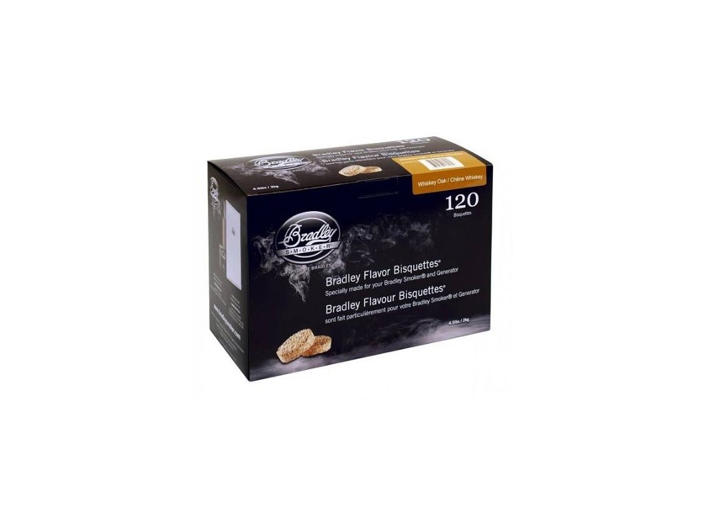 Udící brikety Bradley Whiskey DubUdící brikety Bradley Whiskey Dub vám zajistí intenzivní kouřové aroma masa. Tajemství chuti v každém malém kolečku.