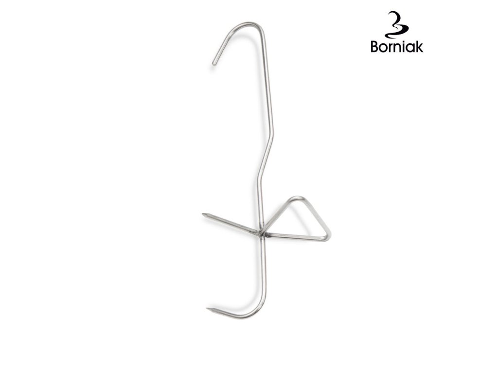 Hák je vybaven trojitou čepelí a distanční vložkou. Konstrukce háku zabraňuje uzavření ryb během uzení. Díky tomu budou ryby rovnoměrně vyuzeny jak zvenčí, tak zevnitř.