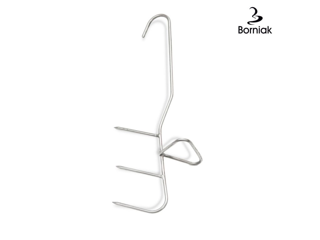 Hák je vybaven trojitou čepelí a distanční vložkou. Konstrukce háku zabraňuje uzavření ryb během uzení. Díky tomu budou ryby rovnoměrně vyuzeny jak zvenčí, tak zevnitř.