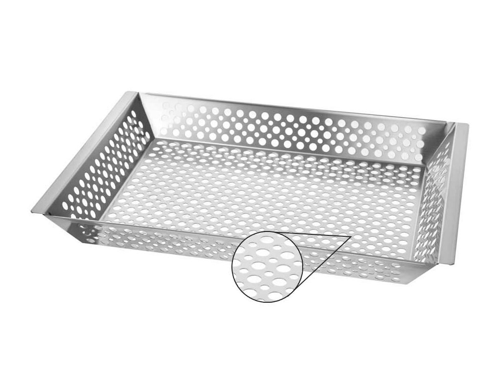 - UZENÁŘSKÝ ROŠT: Vysoké boční stěny a perforovaný povrch usnadňují uzení menších potravin a zabraňují jejich vypadávání přes mřížku.