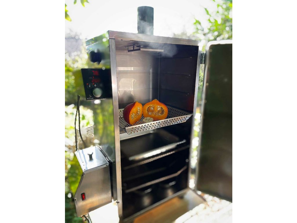- VYROBENO Z NEREZOVÉ OCELI: Kartáčovaná konstrukce z nerezové oceli a hustá perforace zajišťují rovnoměrnou difuzi kouře a teploty pro rychlé a efektivní uzení.