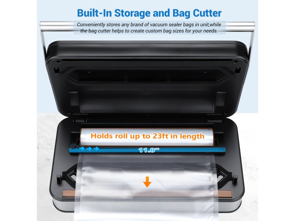 - Vestavěná řezačka pro přizpůsobení délky sáčku