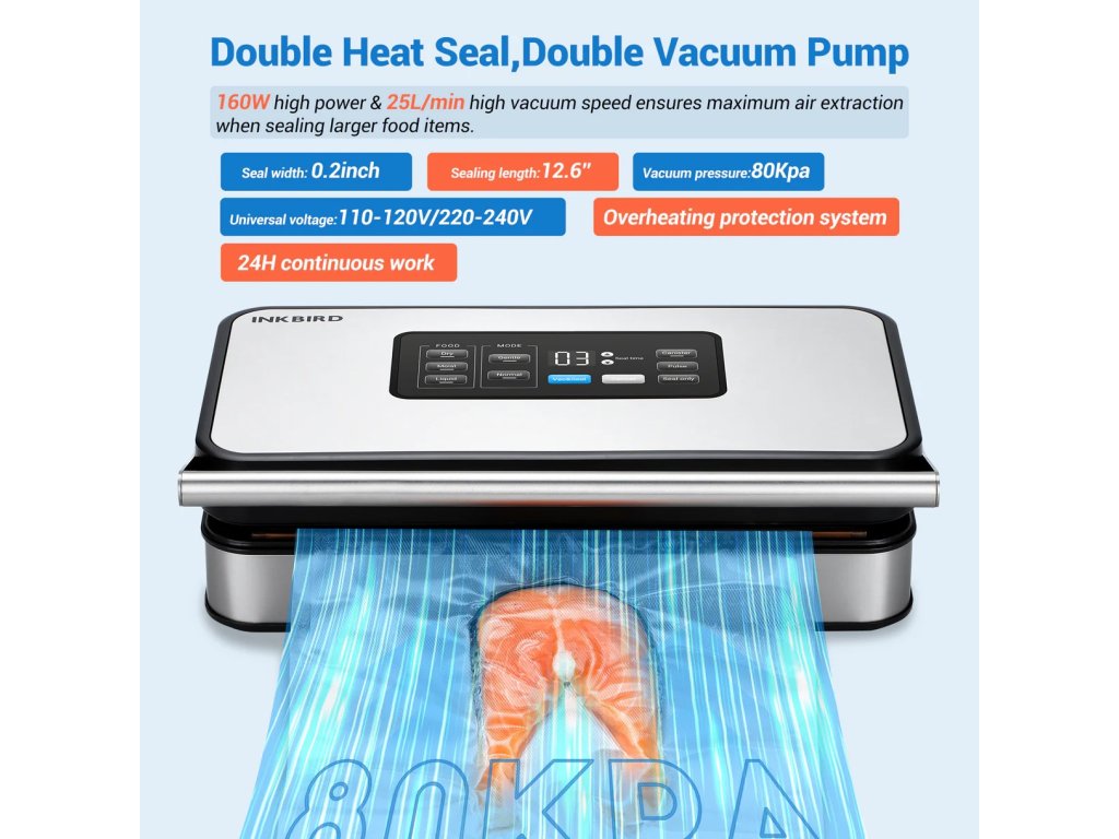 Vakuová balička INKBIRD INK-VS04 je skvělým řešením pro ty, kteří chtějí minimalizovat plýtvání, maximalizovat chuť a uchovávat potraviny v nejlepší kvalitě.