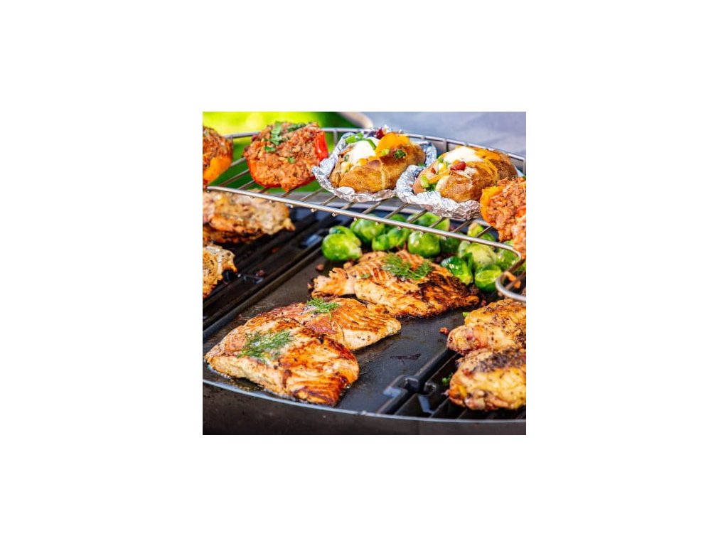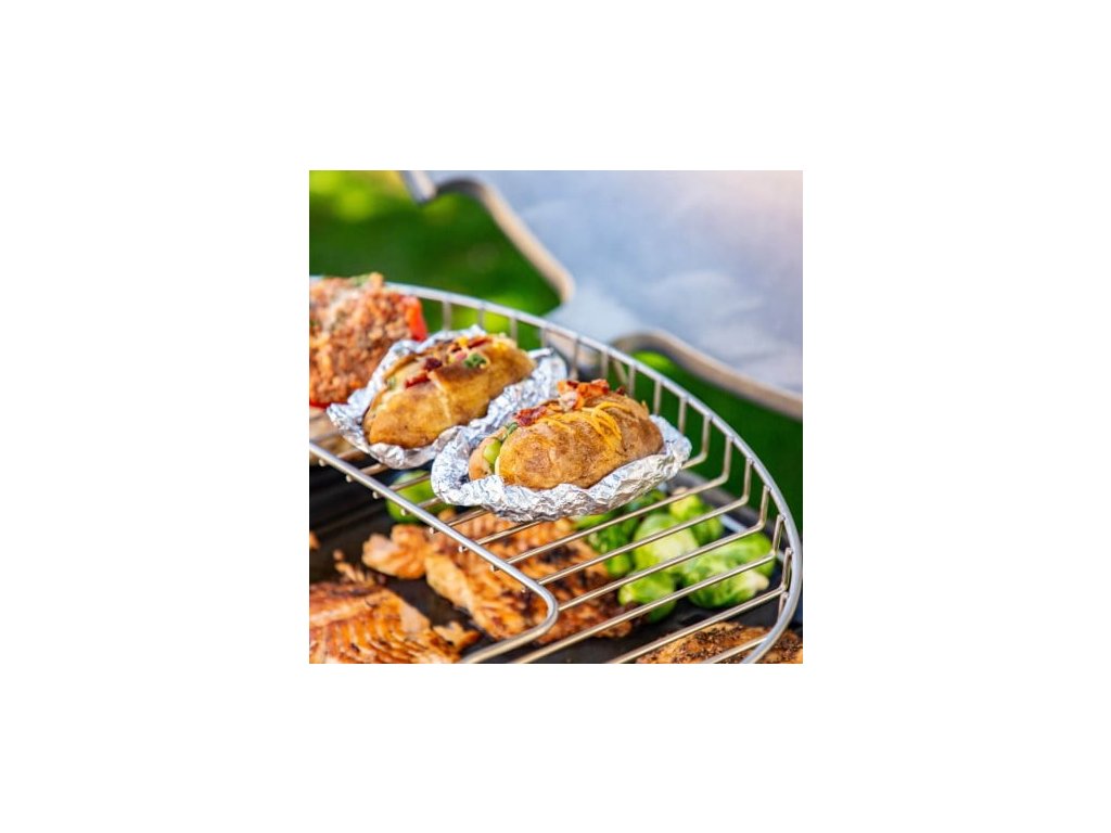 Vrchní ohřívací stojan pro plynový gril Sportsman 3B, kde hotové jídlo zůstane vždy teplé.