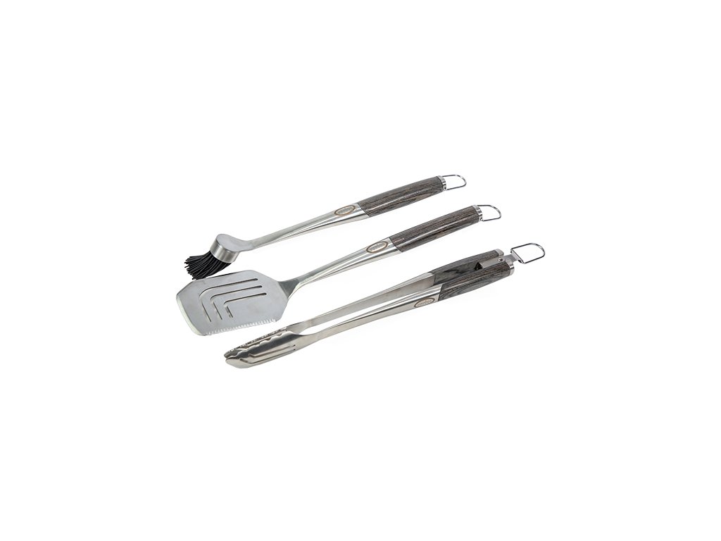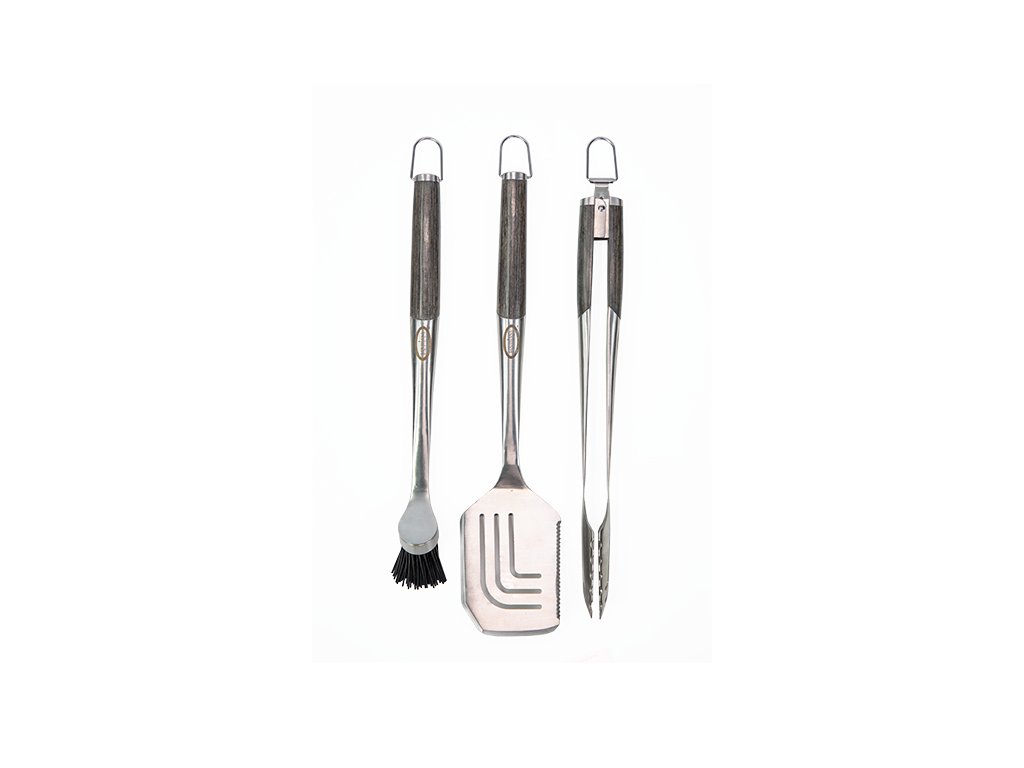 3dílná sada nástrojů Louisiana vhodná ke každému grilu. V sadě najdete špachtli, kleště a mašlovačku. Vše, co ke grilování potřebujete, pořídíte v této sadě.