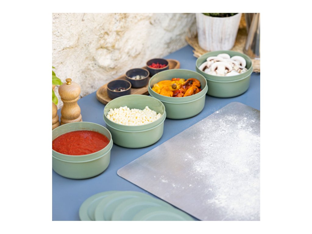 6 praktických a víceúčelových misek na těsto na pizzu!6 misek na těsto na pizzu Spetina je díky integrovanému víku ideálním nástrojem pro kynutí těsta na pizzu a předcházení jeho vysychání. Tyto misky slouží také jako nádoby na polevy na pizzu a další přísady.