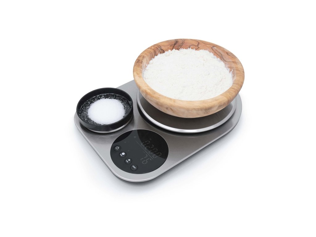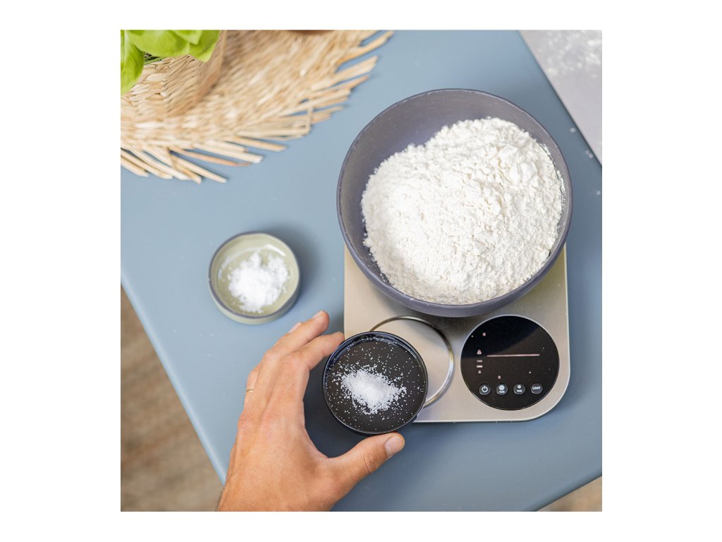 - Dvojitá platforma pro větší přesnost: Váha Serola je vybavena dvěma vážicími platformami, jednou velkou a jednou menší. Tato jedinečná funkce vám poskytuje bezkonkurenční přesnost pro velká množství i pro menší přísady, jako je sůl a droždí.