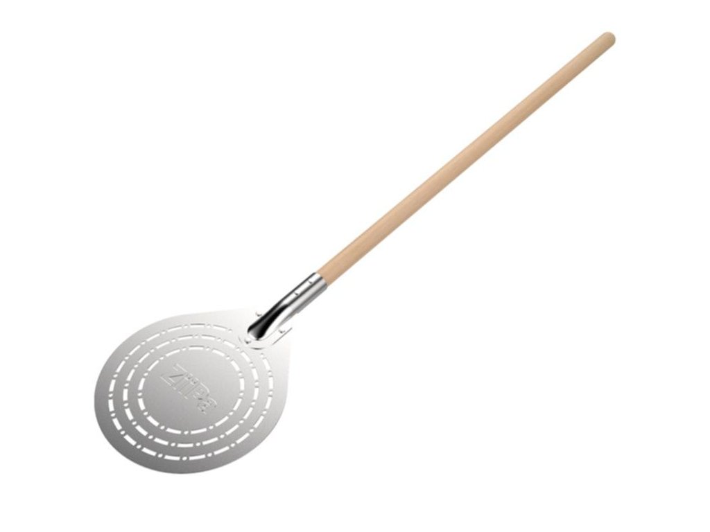 Praktická a lehká lopata na pizzu s dřevěnou rukojetí z bukového dřeva. Kulatá perforovaná pizza lopata je nezbytným doplňkem pro snadné vyjmutí vaší pizzy bez rizika popálení díky své dlouhé rukojeti. Perforovaná plocha lopaty umožňuje snadné odloupnutí pizzy, čímž se minimalizuje riziko, že by se pizza přilepila na lopatu. Navíc se také snižuje množství mouky v peci, a tím se minimalizuje hořká chuť, která může vzniknout při spálení mouky v peci.