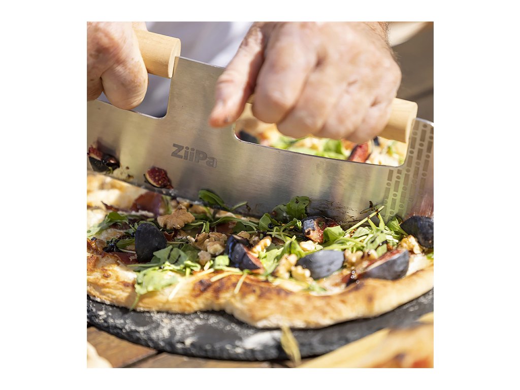 Představujeme vám ZiiPa Kolébkový kráječ na pizzu, nejjednodušší a nejrychlejší způsob, jak nakrájet čerstvě upečenou pizzu na plátky připravené k okamžité konzumaci.