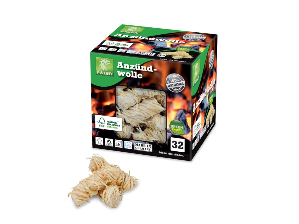 Ekologická dřevovlna značky FLASH se skládá z přírodního dřeva a vosku na rostlinné bázi. Produkt je vhodný pro bezpečné, málo zapáchající a čisté rozhoření grilu, krbu nebo ohniště.