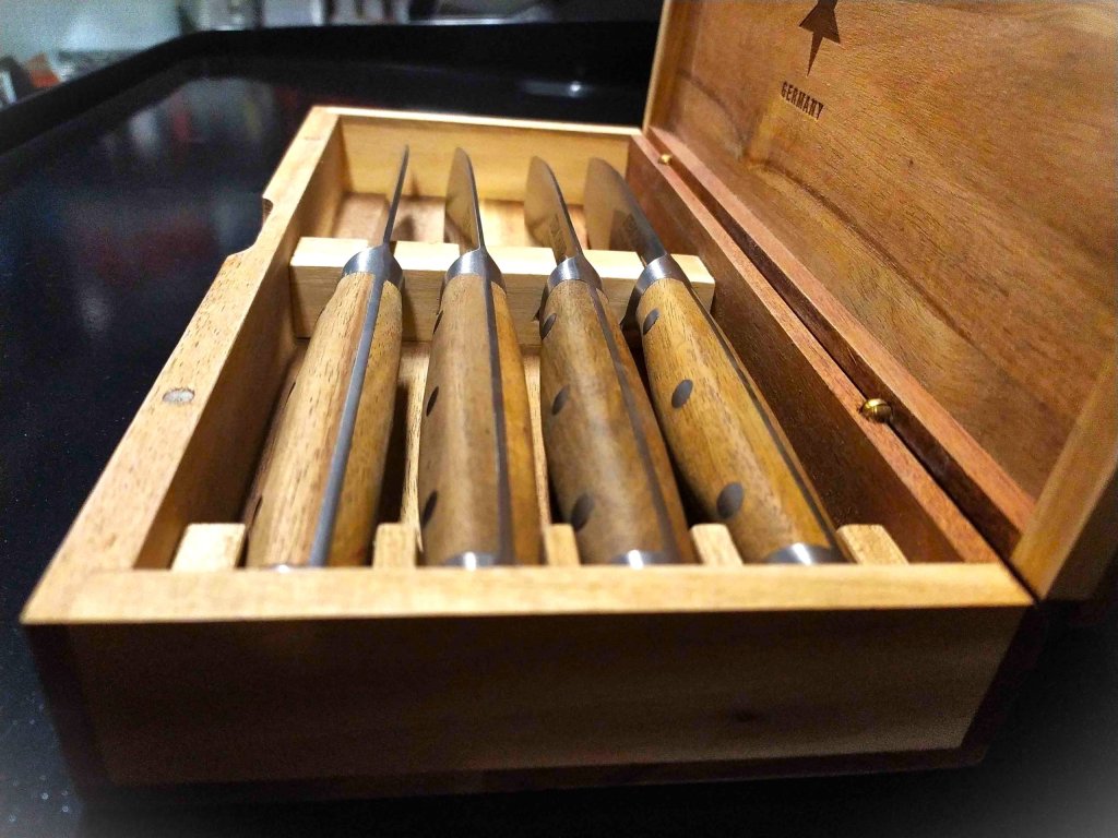 Ostrá čepel je doplněna o pohodlnou dřevěnou rukojeť, která skvěle padne do ruky. Celá sada je zabalena v luxusní dřevěné dárkové krabičce, takže ji můžete využít rovnou jako stylový dárek.