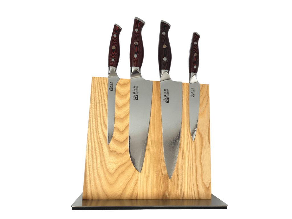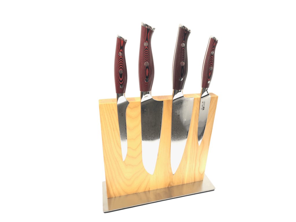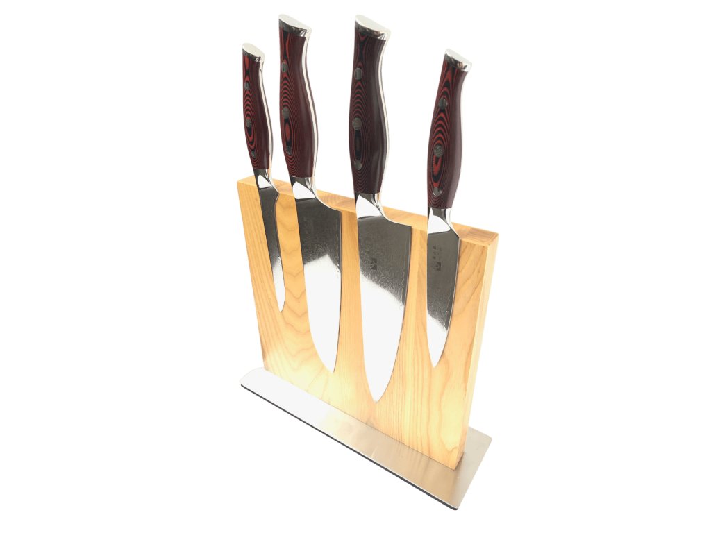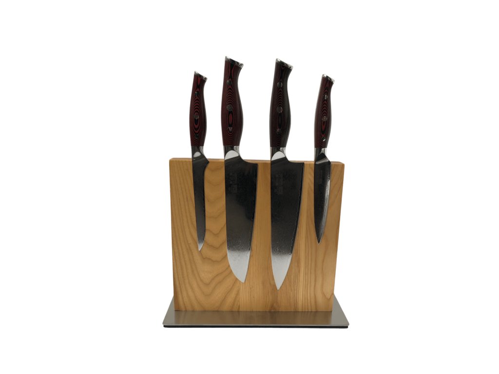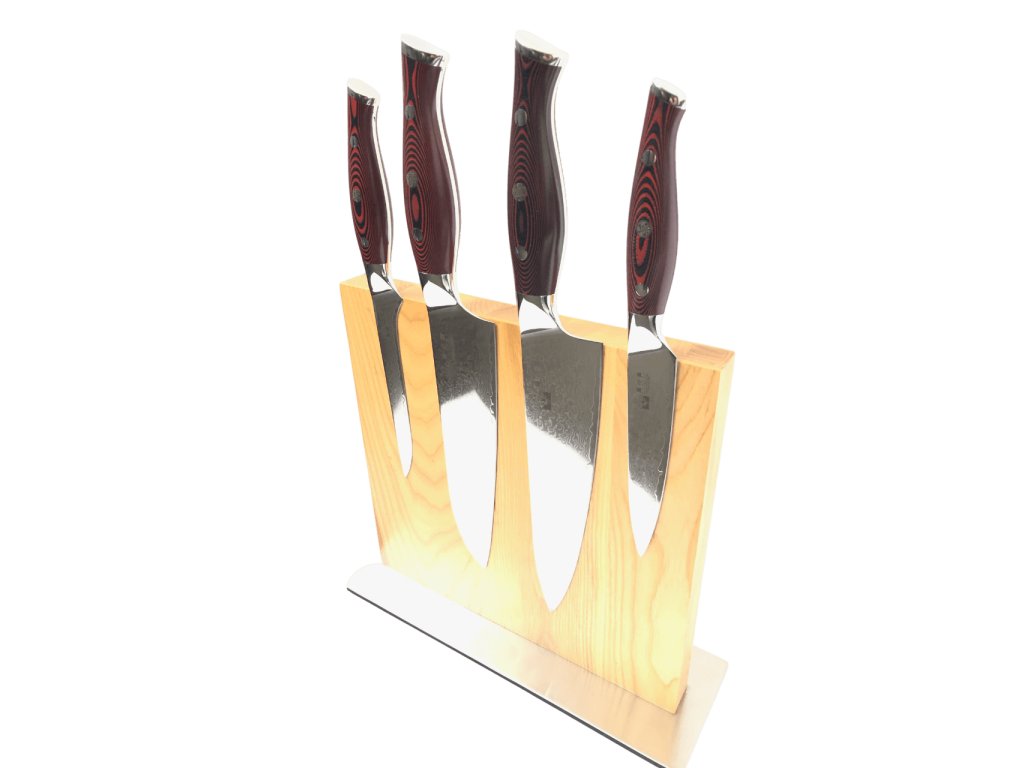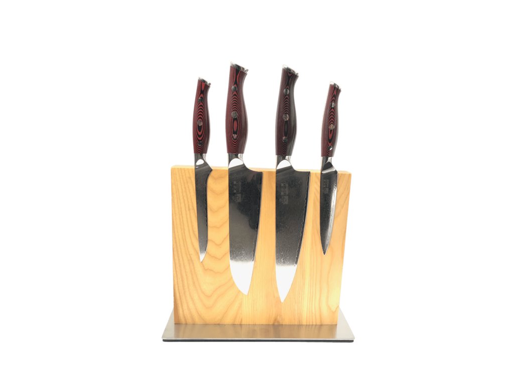 Sada damaškových nožů s blokem je vyrobena z 67vrstvé damaškové oceli VG-10 a vyznačuje se vysokou odolností proti korozi, odolností proti opotřebení a dlouhou životností. Každá čepel je podrobena ultra-přesnému vakuovému tepelnému zpracování s tvrdostí podle Rockwella 60±2 HRC.