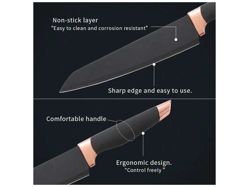 Tato 6-dílná sada kuchyňských nožů značky Gooda je ideálním pomocníkem do každé moderní kuchyně. Nože jsou vyrobeny z kvalitní nerezové oceli s nepřilnavou úpravou, která usnadňuje krájení a následnou údržbu.