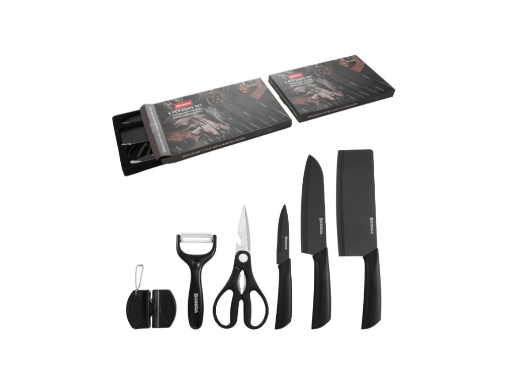 Představujeme 6-dílnou sadu kuchyňského příslušenství od značky Gooda, která je nezbytným pomocníkem pro každého kuchaře. Tato praktická sada zahrnuje základní nástroje potřebné pro přípravu široké škály pokrmů, ať už jste začátečník nebo zkušený kulinář.