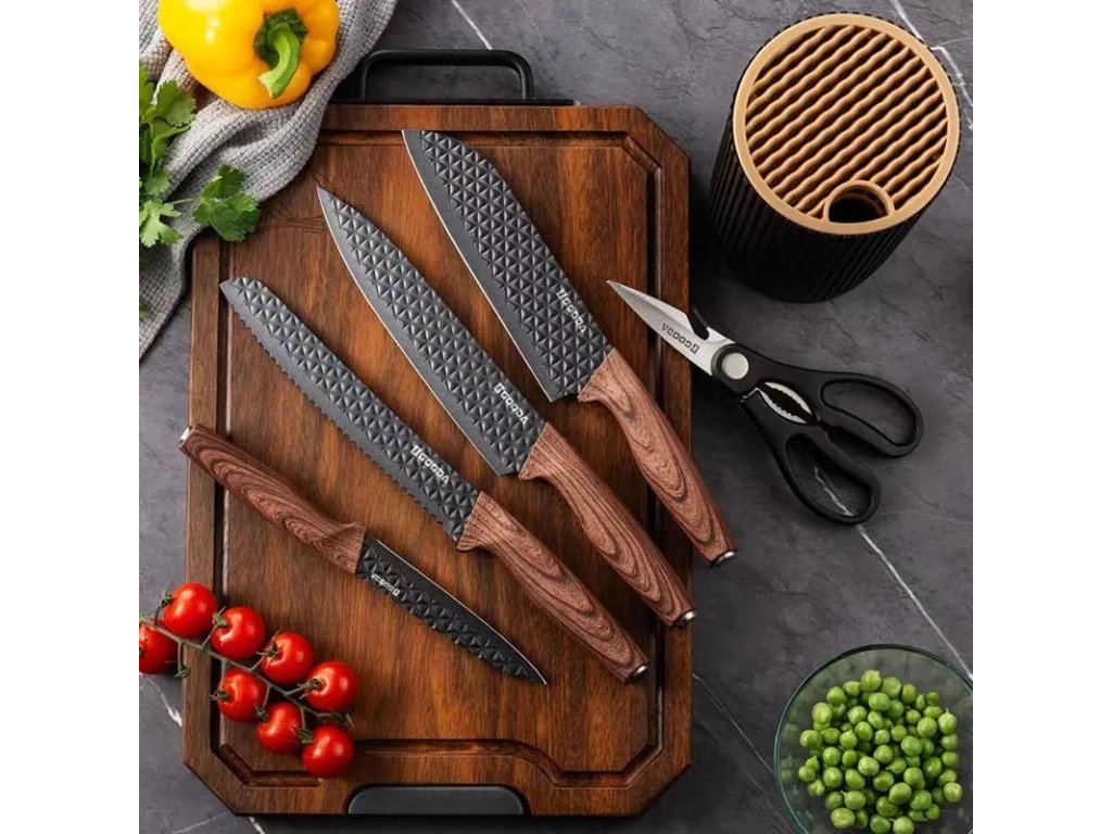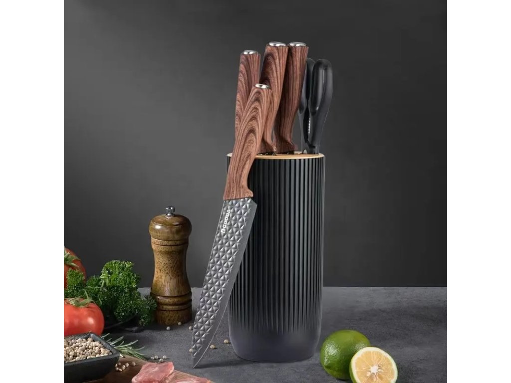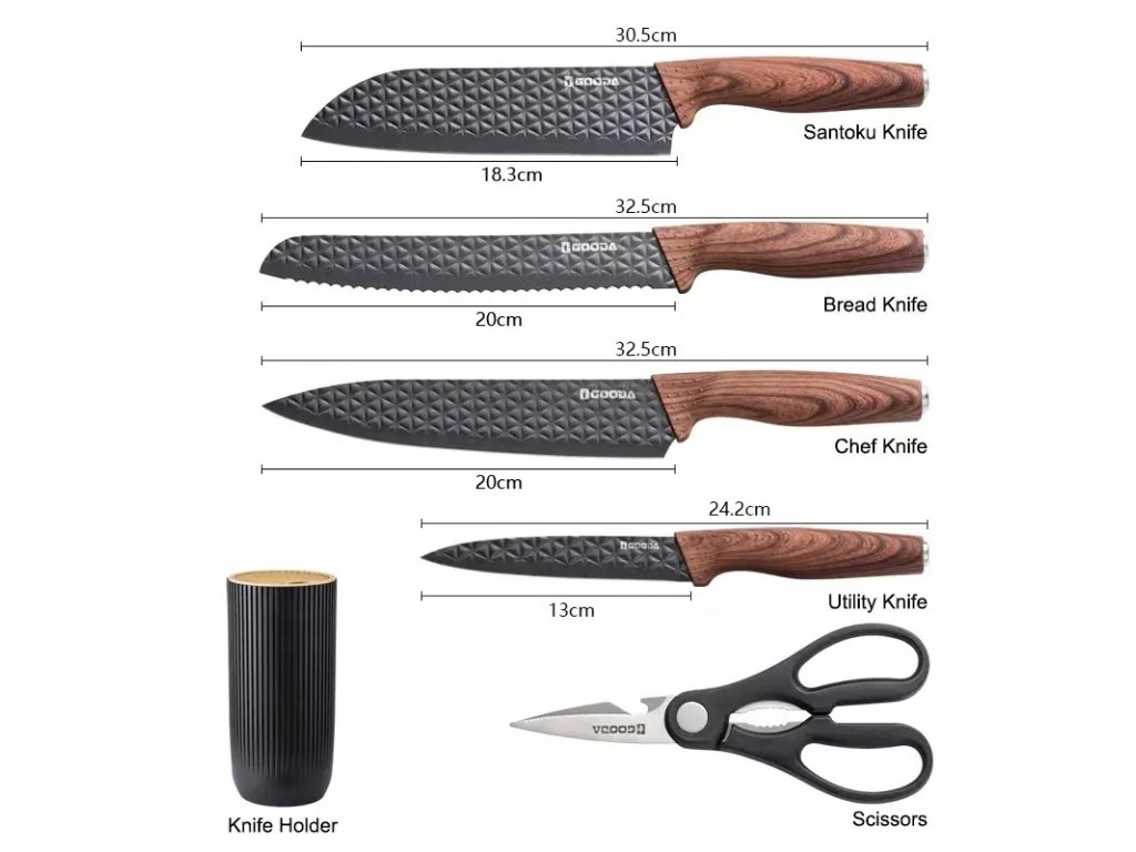 6-dílná sada kuchyňských nožů se stojanem černá Gooda