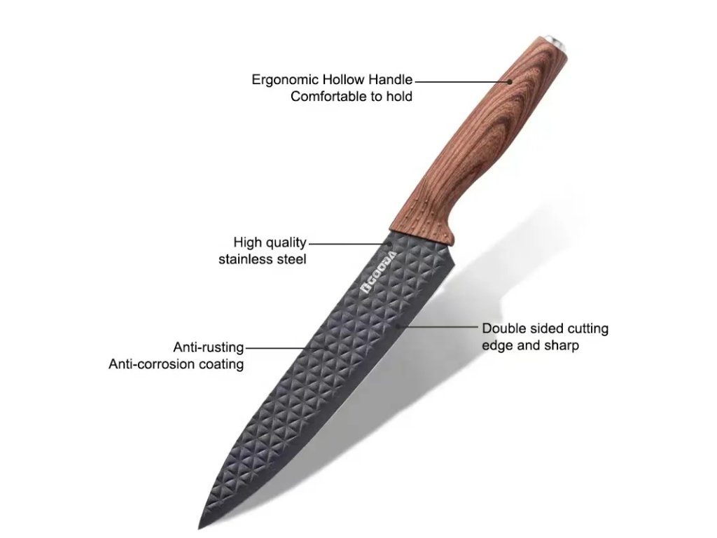 Sada obsahuje:- Nůž chef (kuchařský) – 20,3 cm (tloušťka 1,5 mm)