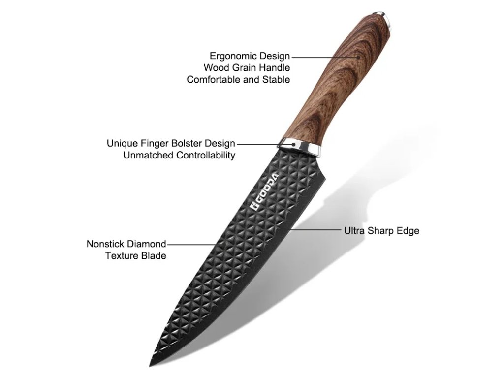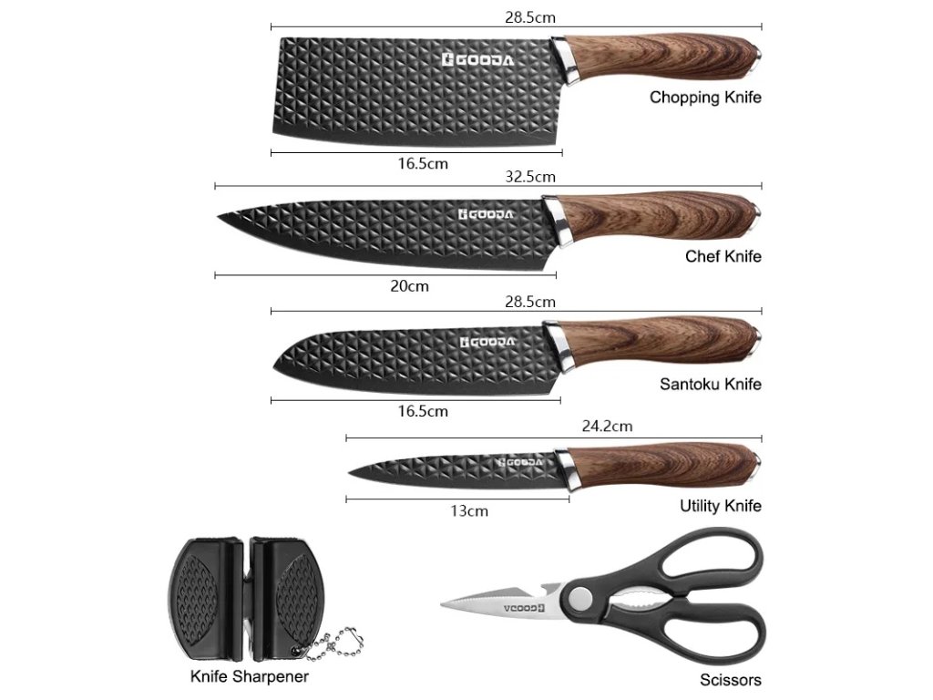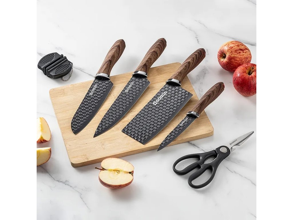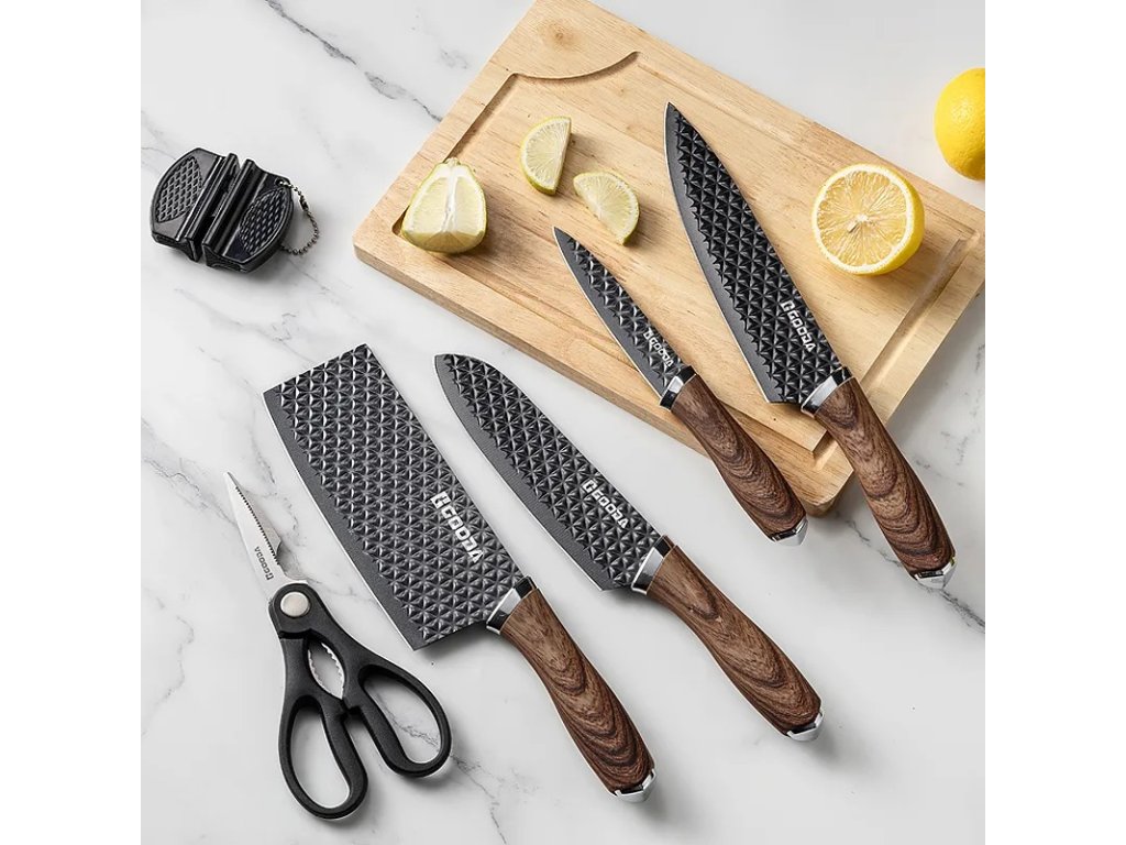 Tato 6dílná sada kuchyňských nožů značky Gooda je ideálním pomocníkem pro každodenní vaření. Nože jsou vyrobeny z kvalitní nerezové oceli 3CR13, která zajišťuje dlouhou životnost a snadnou údržbu.