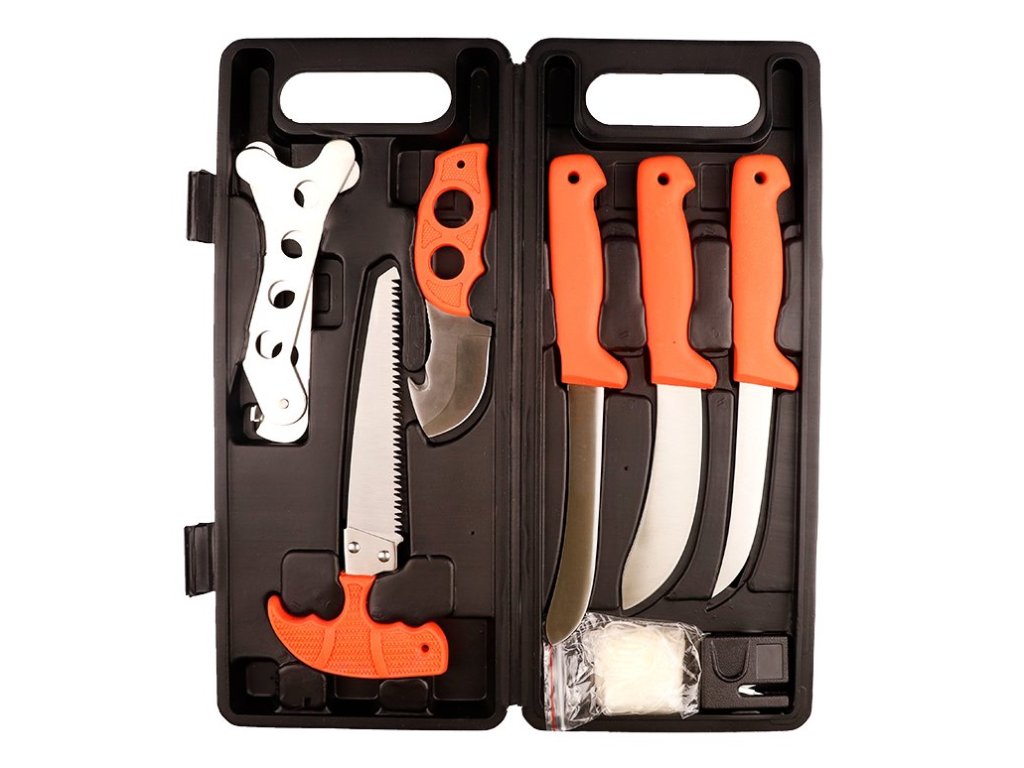 Sada loveckých nožů na vyvrhování a zpracování zvěřiny. V praktickém kufříku naleznete: