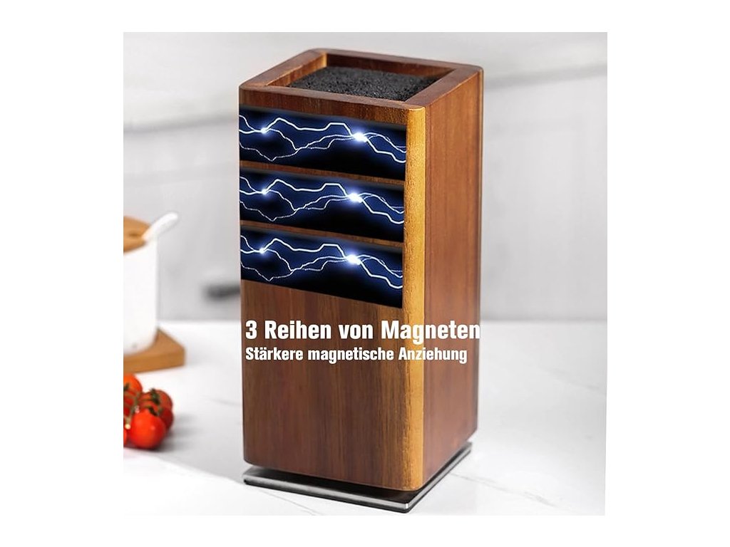 Všestranné využití a silný magnetOdnímatelné provedení vnitřního jádra umožňuje umístit nástroje podle potřeby. Jádro můžete vyjmout a vložit malé kuchyňské nástroje, jako jsou lžíce či mixéry. Ve srovnání s běžnými bloky má tento model 3 řady magnetů na 4 stranách (1600G), což zajišťuje maximální bezpečnost a stabilitu uchycených nožů.