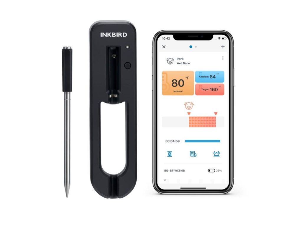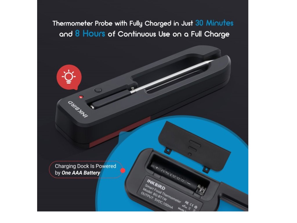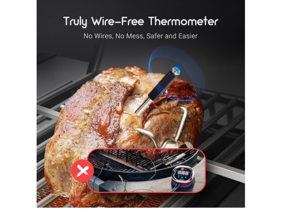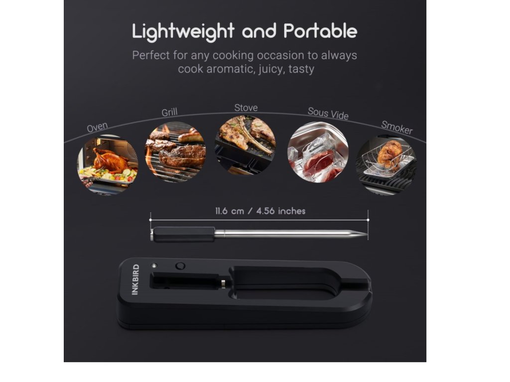 Bezdrátový digitální teploměr INKBIRD na maso s technologií Bluetooth je navržen tak, aby byl vložen a ponechán v mase po celou dobu grilování nebo uzení. Díky zcela bezdrátovému provedení vás nebudou omezovat žádné kabely.