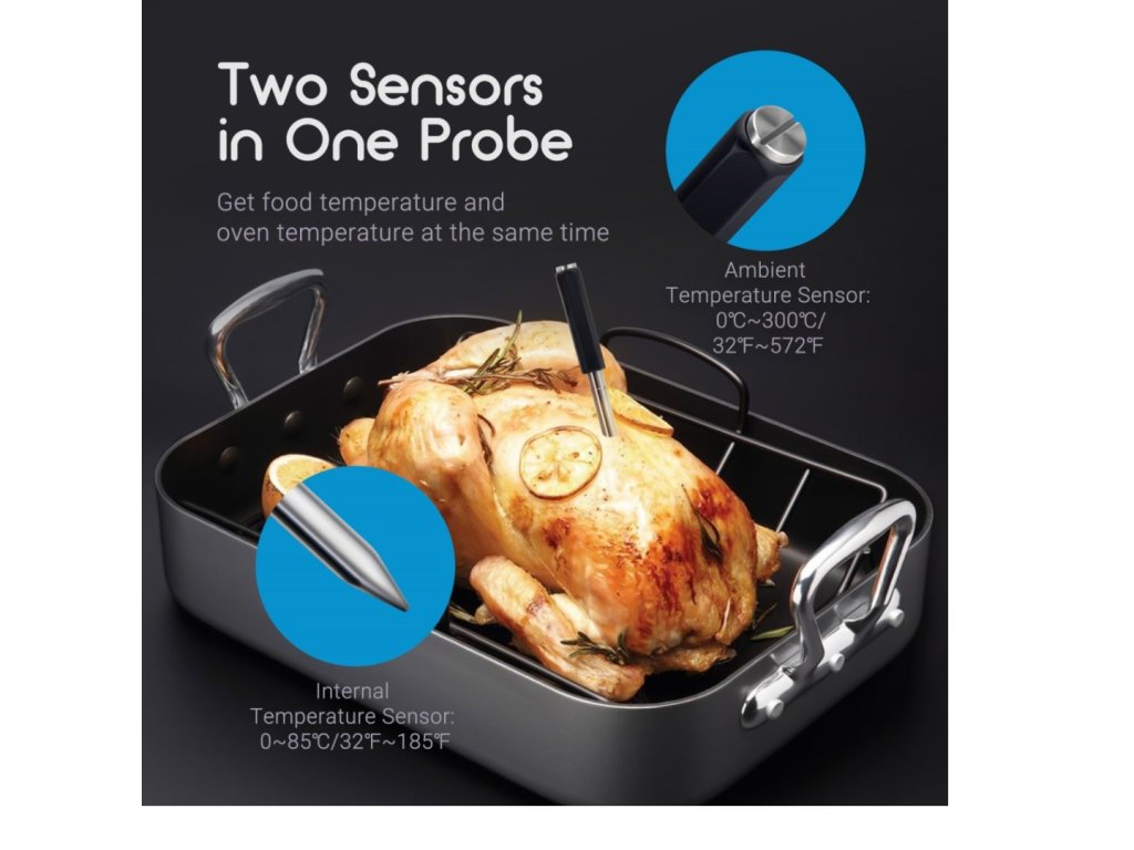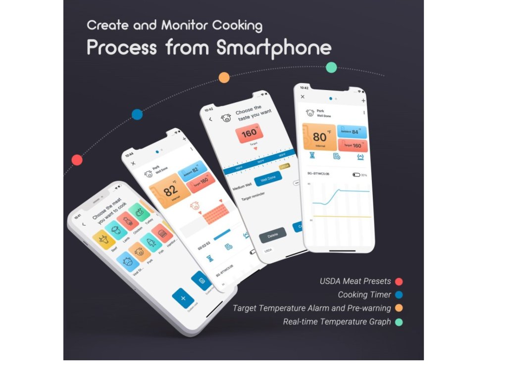 Teploměr je kompatibilní s aplikací pro Android (5.0 a vyšší) a iOS (10.3 a vyšší), která vám umožní snadno sledovat průběh přípravy vašeho pokrmu.