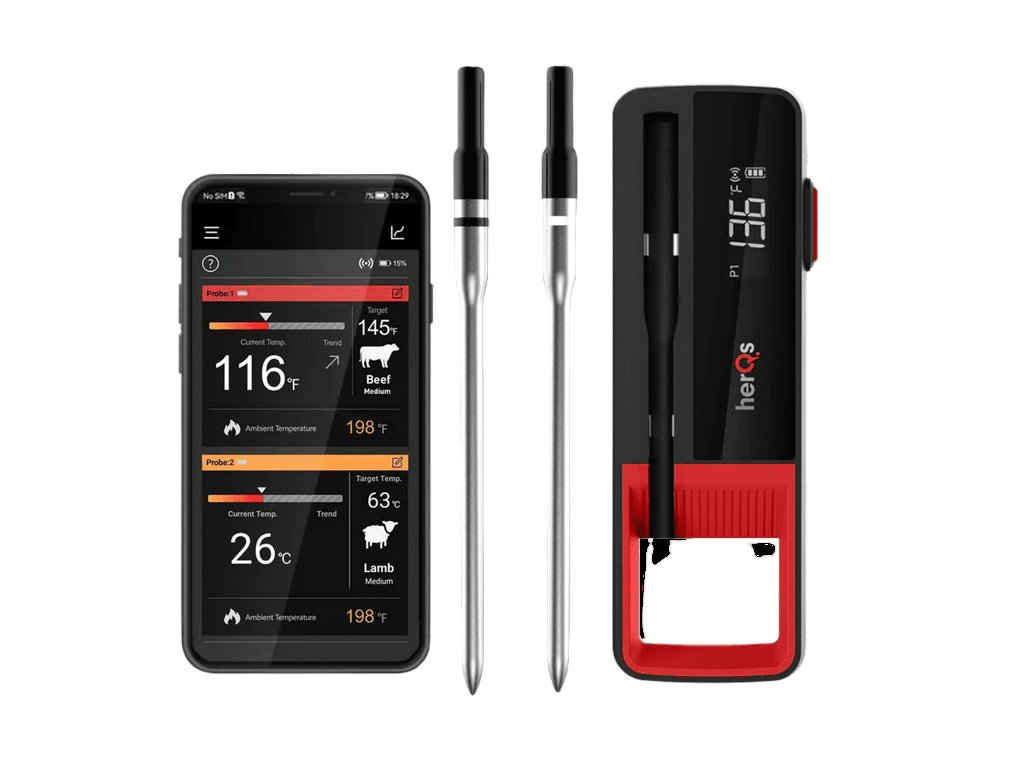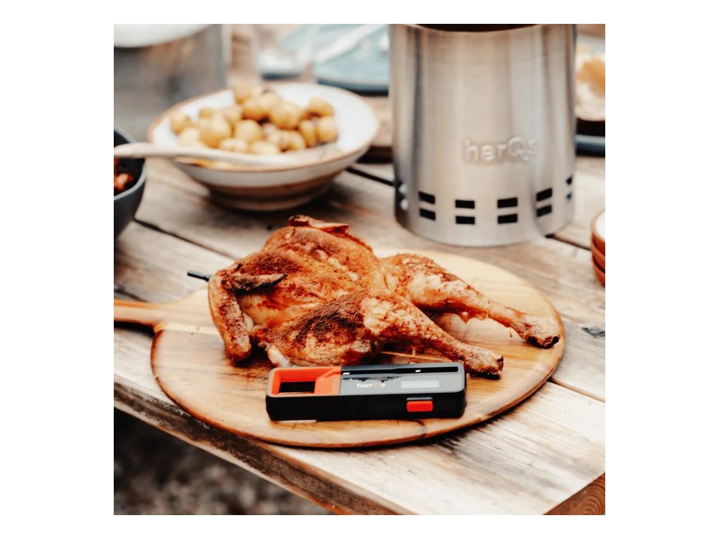 Aplikace herQsS aplikací herQs si můžete určit ideální dobu grilování pro vaše pokrmy. Požadované časy a teploty si můžete nastavit podle svých představ. Aplikace zobrazuje aktuální i cílovou teplotu a pomocí grafů můžete sledovat teplotní trendy. Můžete sledovat až šest teplotních sond současně. Aplikace herQs je zdarma a pravidelně aktualizována.