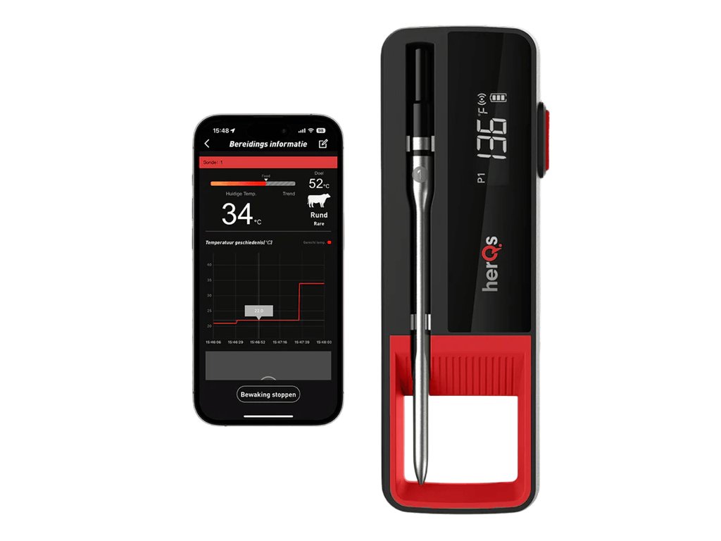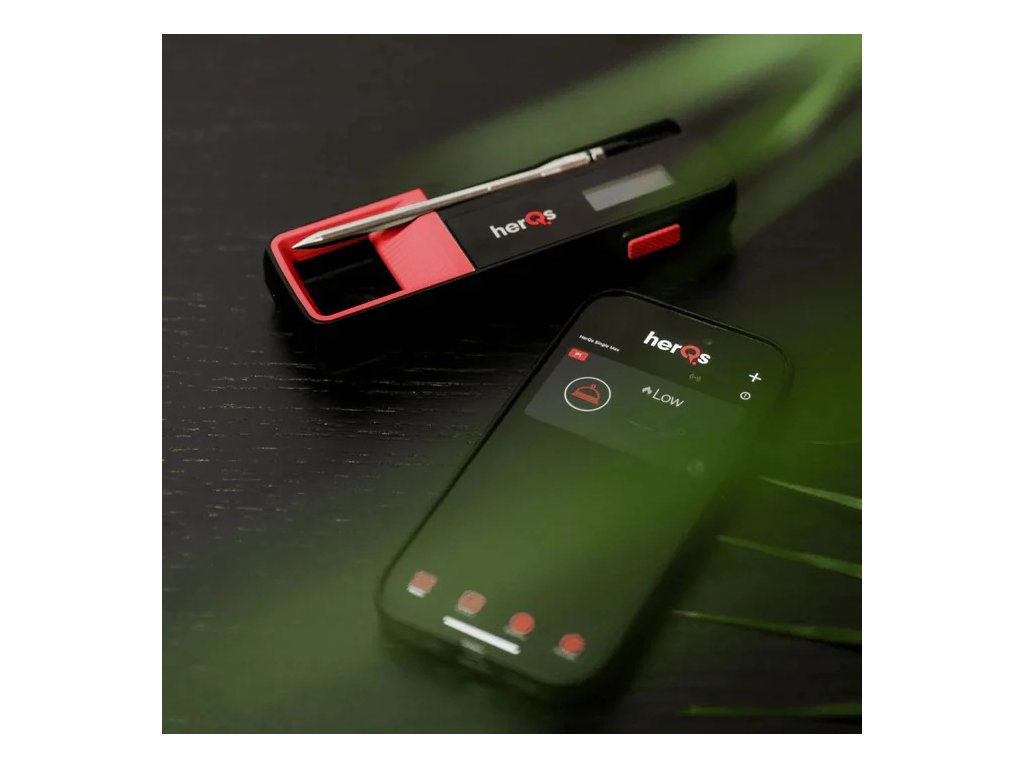 Aplikace herQsS aplikací herQs si můžete určit ideální dobu grilování pro vaše pokrmy. Požadované časy a teploty si můžete nastavit podle svých představ. Aplikace zobrazuje aktuální i cílovou teplotu a pomocí grafů můžete sledovat teplotní trendy. Můžete sledovat až šest teplotních sond současně.
