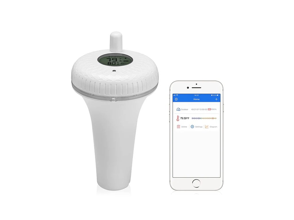 Voděodolný design IPX7Teploměr má kompaktní tělo s certifikací IPX7. Silikonový těsnící kroužek na otvoru zabraňuje prosakování vody, což zajišťuje vyšší odolnost ve srovnání s běžnými bazénovými teploměry.