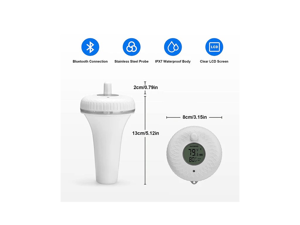 Vodotěsný teploměr IBS-P02B IPX7 je ideální pro vnitřní a venkovní použití, jako jsou bazény, jezírka, akvária, dětské vany či lázně. Okamžitou teplotu a historické záznamy můžete zkontrolovat prostřednictvím aplikace „Inkbird“ ve vašem telefonu.