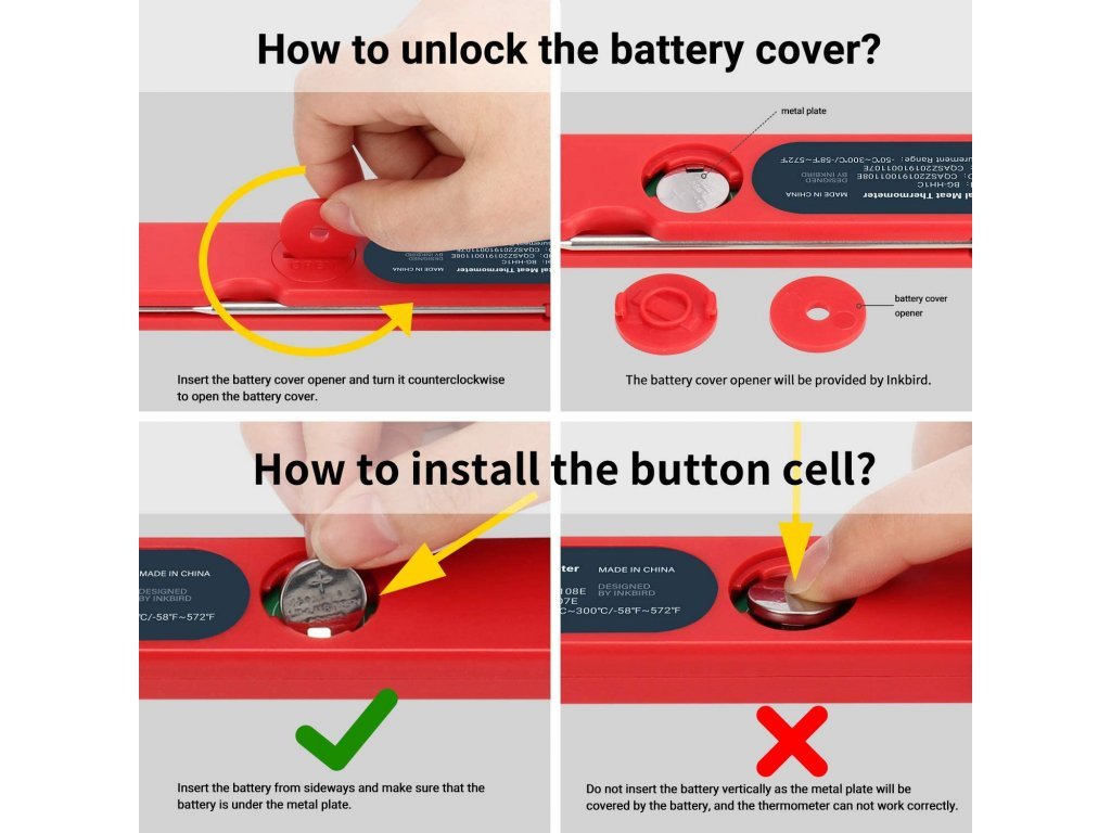 Součástí balení je baterie 1x CR1632. Díky kompaktnímu designu a magnetickým zádům je tento teploměr ideálním pomocníkem pro každodenní vaření i grilování.