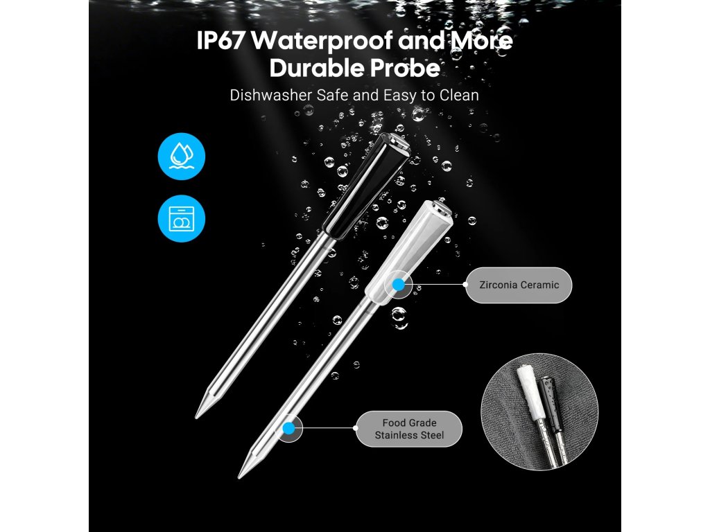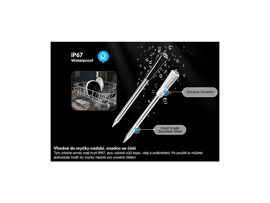 Lze mýt v myčce, snadno se čistíTyto sondy z nerezové oceli vhodné pro potraviny s rukojeťmi ze zirkonové keramiky jsou odolné proti poškrábání, žáruvzdorné a vodotěsné s krytím IP67. Po použití je můžete mýt v myčce nádobí pro snadné čištění.