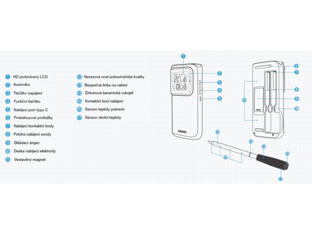 Multisensorový teploměr na maso INT-12E-BW Inkbird (2 sondy, Wifi/Bluetooth)