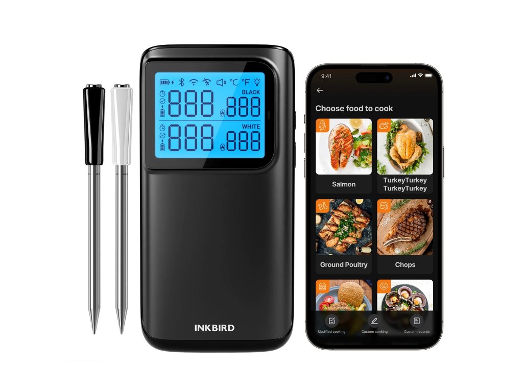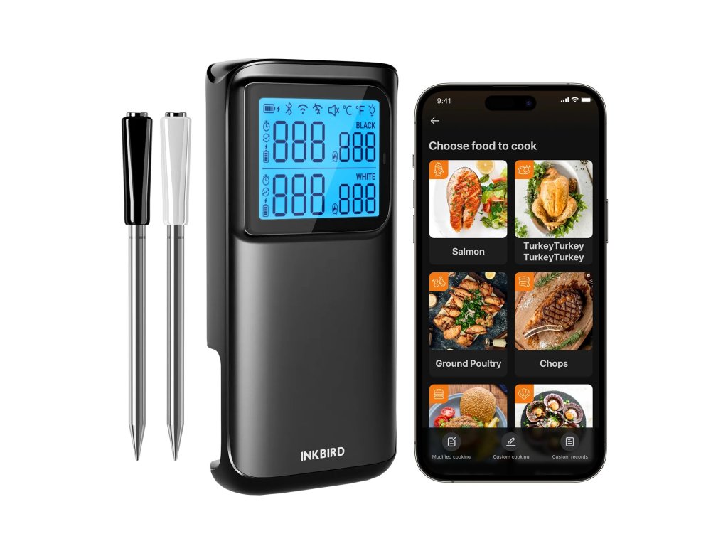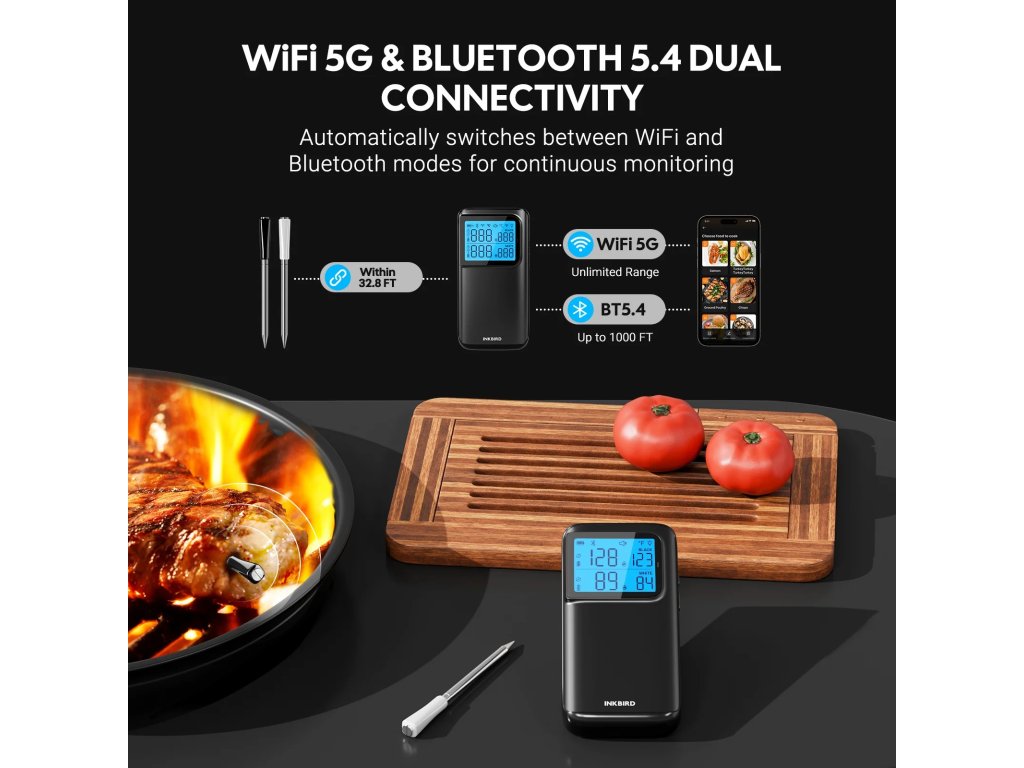 Představujeme vám teploměr na maso Inkbird INT-12E-BW se dvěma sondami – ideální nástroj pro každého milovníka vaření, který usiluje o dokonalé výsledky. Tento moderní teploměr kombinuje pokročilé WiFi a Bluetooth technologie, což vám umožňuje sledovat teplotu vašich pokrmů přímo z vašeho chytrého zařízení.