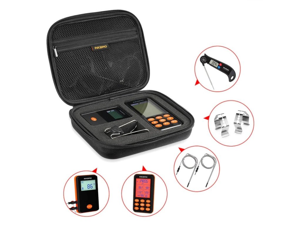 Toto odolné pouzdro poskytuje spolehlivou ochranu a zároveň udržuje váš teploměr i veškeré příslušenství na jednom místě. Díky kompaktním rozměrům a pohodlnému designu je ideální pro grilování na cestách.