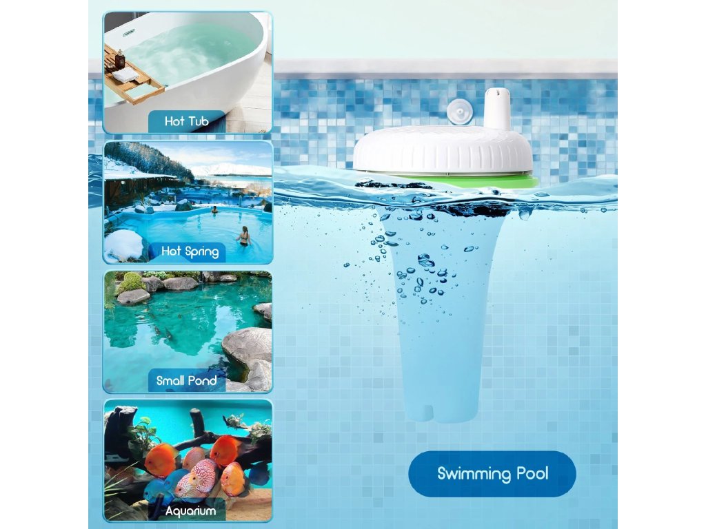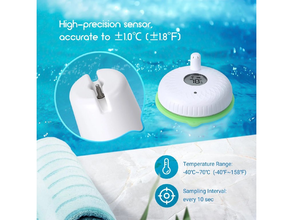 - Flexibilní použití: vhodný pro bazény, vířivky, jezírka, akvária z důvodu širokého měřicího rozsahu -40 °C až 70 °C.