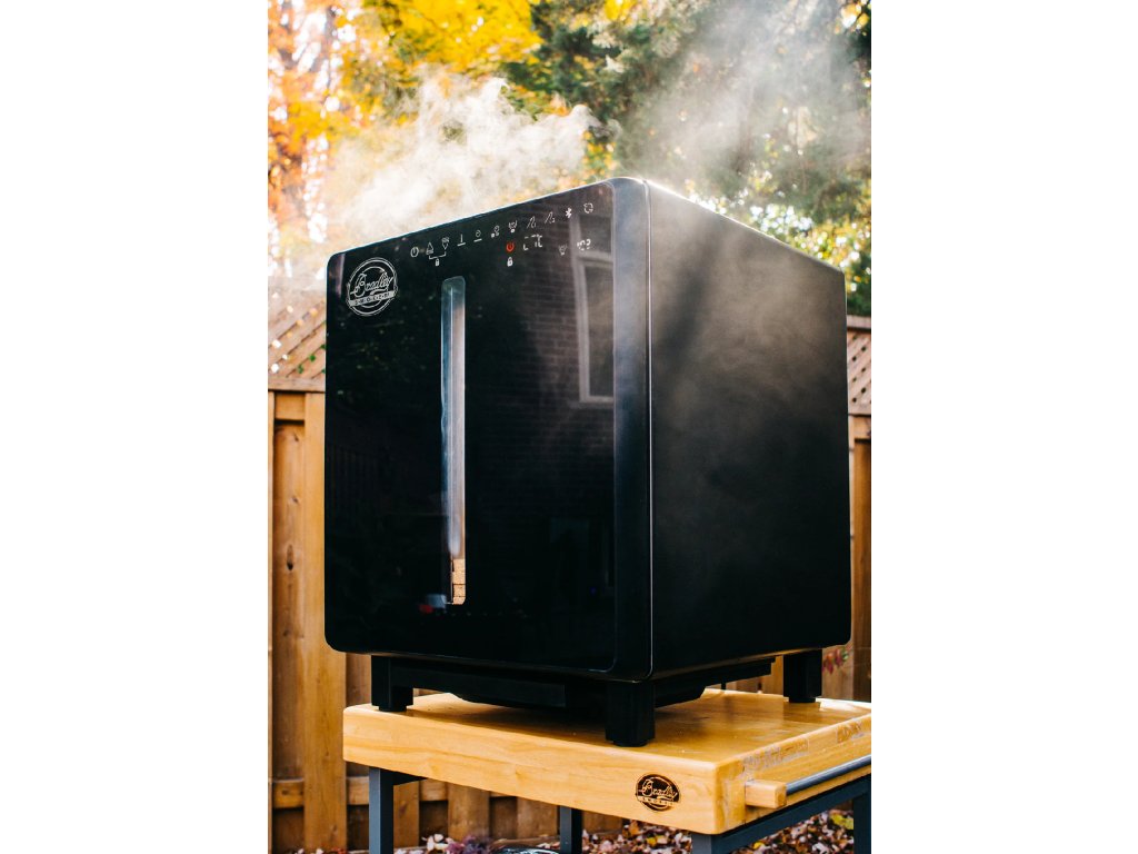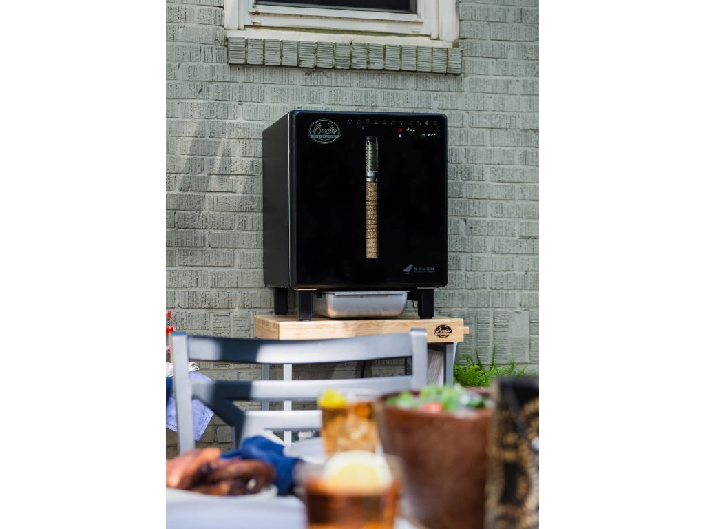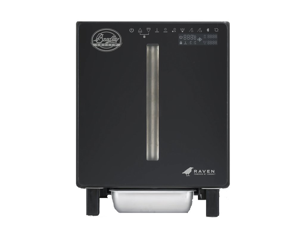 - Konstrukce a design: Udírna Bradley Raven má práškově lakovaný exteriér, který zajišťuje dlouhou životnost a odolnost vůči povětrnostním vlivům. Dvířka z tvrzeného skla umožňují snadnou kontrolu procesu uzení bez nutnosti jejich otevírání.