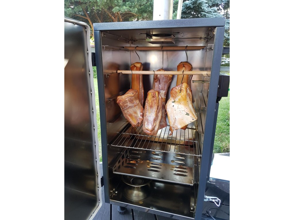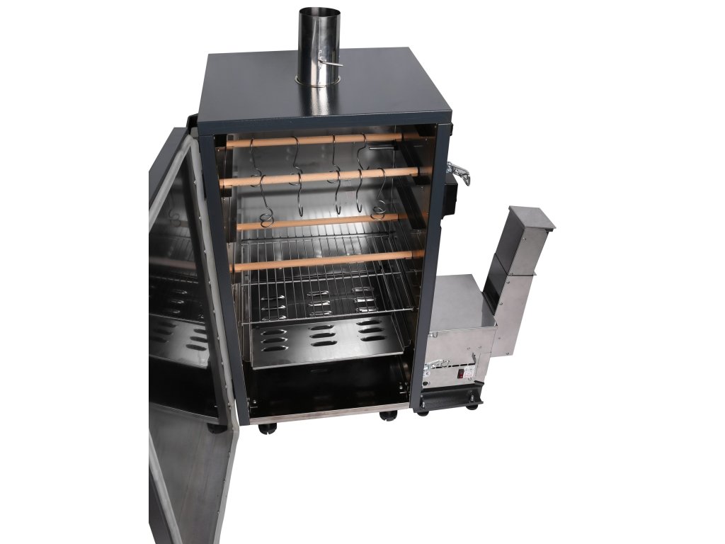 Udit můžete na 5 roštech, hácích nebo dřevěných tyčích k zavěšení masa. Vyudíte až 12 kg dobrot naráz, jako jsou maso, ryby, sýry nebo zelenina. Udírna je vhodná pro celoroční provoz díky kvalitní izolaci vatou.